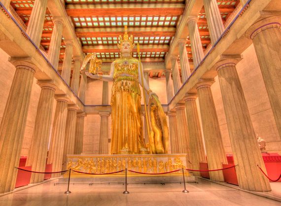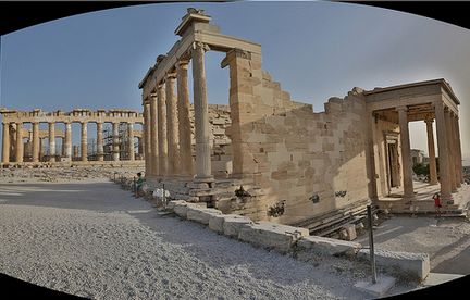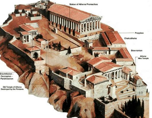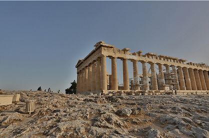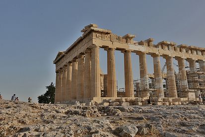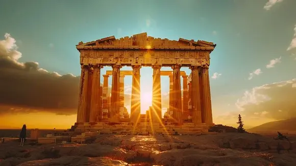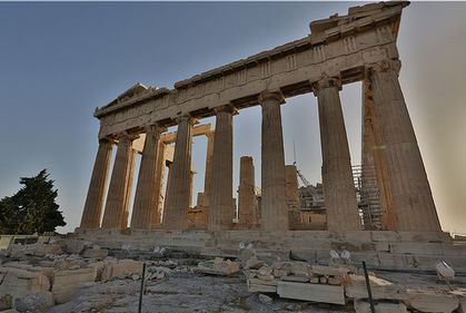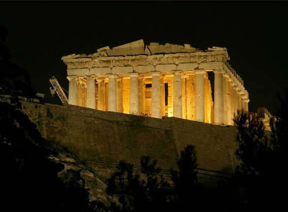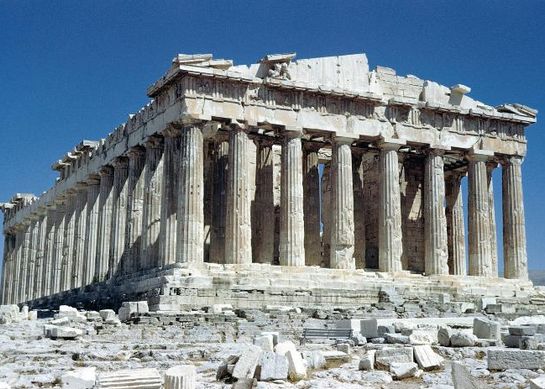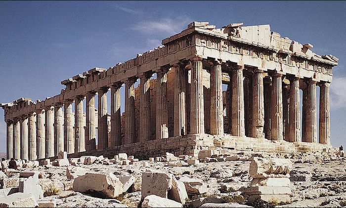 Парфенон — вершина древнегреческой архитектуры, построенный в 447-438 гг. до н.э. под руководством Фидия. Храм посвящён Афине Парфенос (Деве). Его оптические иллюзии — слегка изогнутые линии и наклонные колонны — создают впечатление совершенной гармонии.