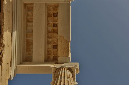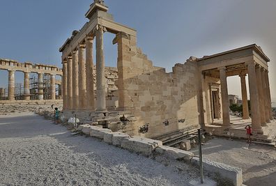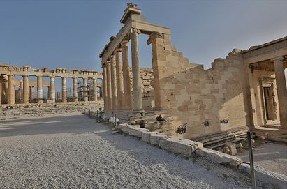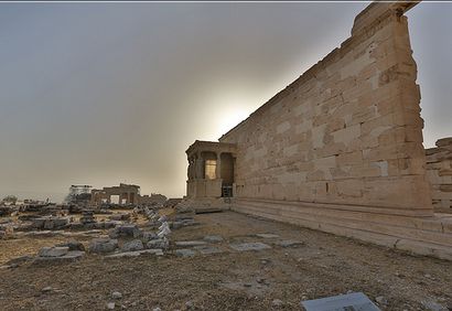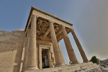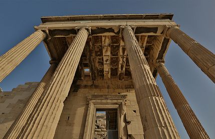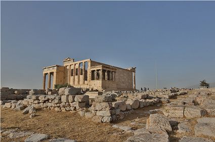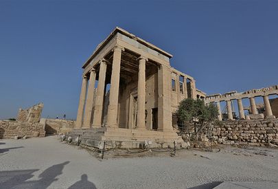 Эрехтейон — сложный по архитектуре храм, построенный в 421-406 гг. до н.э. на месте спора Афины и Посейдона за покровительство над городом. Знаменит портиком кариатид — шестью женскими фигурами, выполняющими роль колонн.