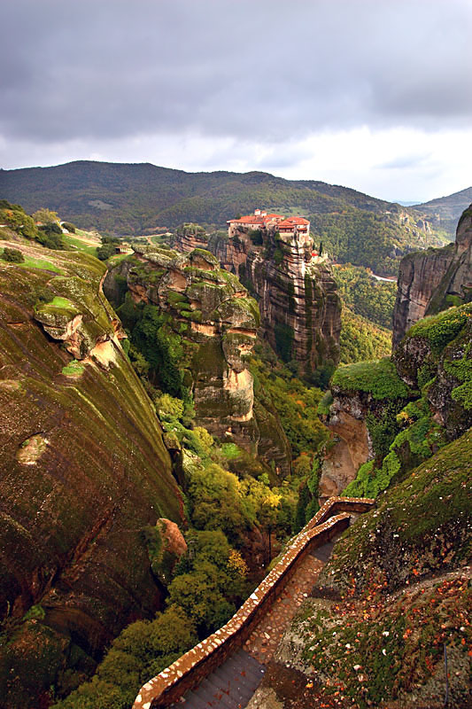Например, к монастырю Варлаам (на фото) можно легко подняться по удобной лестнице, высеченной прямо в скале.