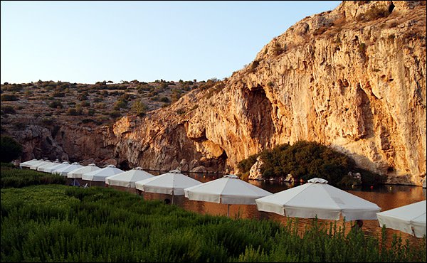 Вокруг озера расположены лежаки, которые входят в стоимость билета. Есть раздевалки, душ и кафешка, где можно перекусить или заказать напитки. Остановка на 1,5–2 часа.