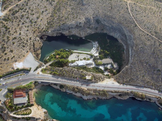 Озеро возникло в результате обвала крыши огромной подземной пещеры, которая соединяется с морем гротами. Вода в озере постоянно пополняется из естественного радонового источника.